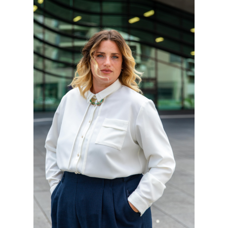 Découvrez le patron de la chemise Skyline issu de la collection Empire State of Fauve. Skyline c'est une chemise avec un jeu de plis autour de la patte de boutonnage et une jolie ouverture sous l'encolure dos. Vous aurez également la possibilité de choisir une version avec un large pli au dos.