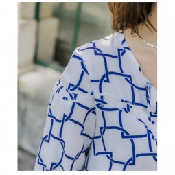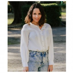 Des tissus de poids léger (80 à 200 g/m2) avec plus ou moins de tenue selon le rendu souhaité. Attention il faut que votre tissu marque bien au fer et ne se déforme pas trop : une viscose, un tencel, un coton, un crêpe, popeline, satin, ou sergé. Les tissus ajourés seront également intéressants pour ce modèle d'autant que la propreté de l'encolure est réalisée avec un biais.