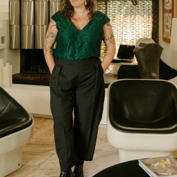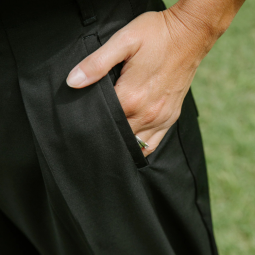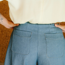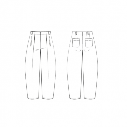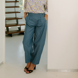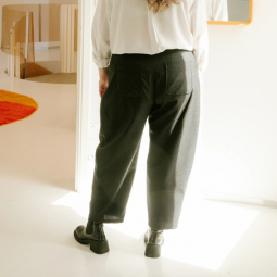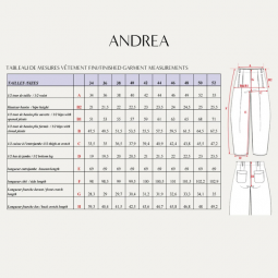 ANDREA est un pantalon à la coupe barrel leg, légèrement arrondie sur la jambe et resserrée à la cheville, entre esprit tailoring et modernité affirmée. Très flatteur, il suivra vos envies en fonction du choix de tissu. Il reprend les codes du vestiaire masculin avec ses poches passepoilées sur le devant et un pli marqué le long de la jambe, tandis que le dos révèle deux poches plaquées ornées d’un détail signature en profil d’hirondelle. La taille se pose dans le creux de la taille. Équilibre parfait entre rigueur et audace, structuré et confortable, ANDREA se porte comme une déclaration de style.