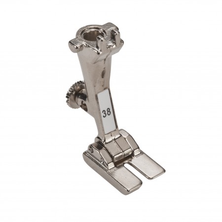 Le côté droit du pied Bernina pour passepoil 38 est surélevé. L'avancement des grosses épaisseurs de tissus sous ce côté du pied est ainsi facilité, tout comme la piqûre de mini passepoils et de rubans.