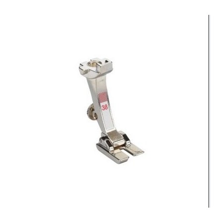 Le côté droit du pied Bernina pour passepoil 38 est surélevé. L'avancement des grosses épaisseurs de tissus sous ce côté du pied est ainsi facilité, tout comme la piqûre de mini passepoils et de rubans.