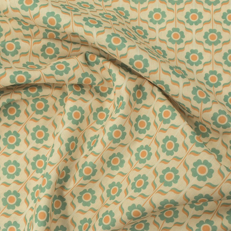 Cretonne de coton avec motifs, qui peut être utilisé pour la confection de vêtements : chemises, pyjama, vêtement d'été, mais peut également être utilisé pour la décoration. Il est aussi très apprécié pour la réalisation d'accessoires.