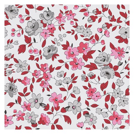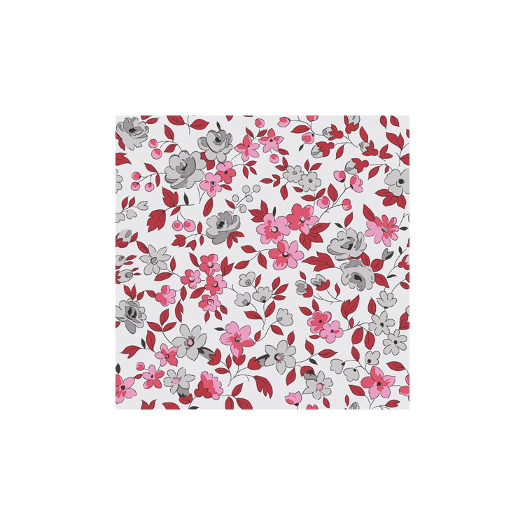 Tissu coton fantaisie avec des motifs floraux, sur fond ecru.