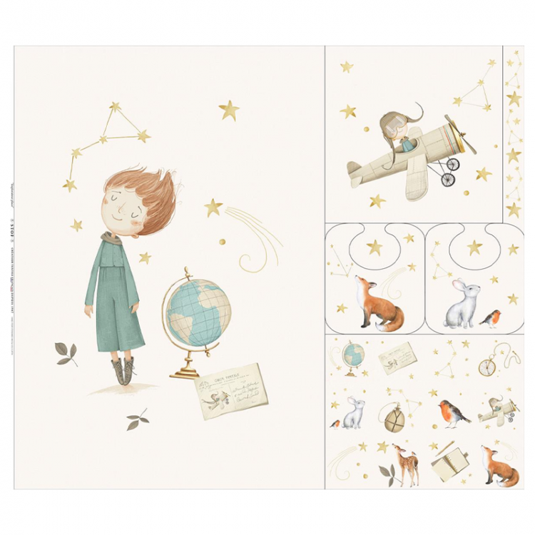 Cretonne de coton avec motifs, qui peut être utilisé pour la confection de vêtements : bavoir, lingettes, coussin et petite couverture