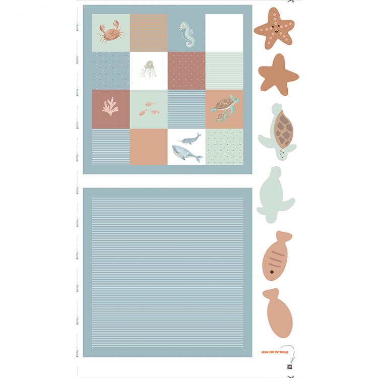 Tissu coton motifs mer, pour réaliser une couverture et des petits coussins, panneau fait 250x140 cm. pour finaliser votre couverture pensez a prendre un molleton de bambou par exemple et quilter la couverture pour lui donner un effet matelassé.