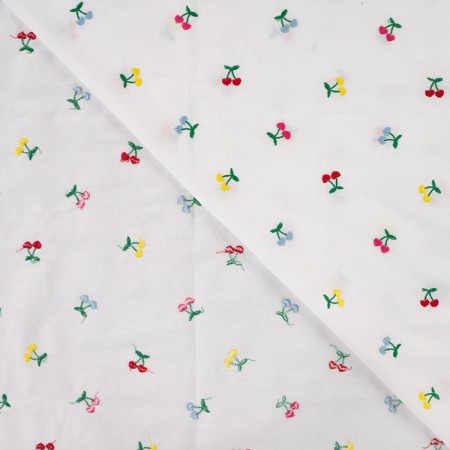 Tissu popeline de coton fantaisie avec motif brodé