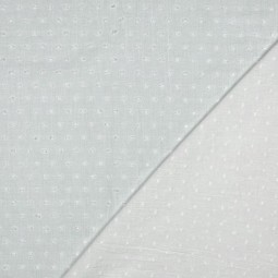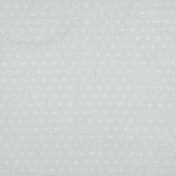 Tissu voile de coton à motifs fleurs brodés et bordure festonnée sur les deux côtés.