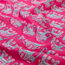 Tissu voile de coton - Éléphant rose
