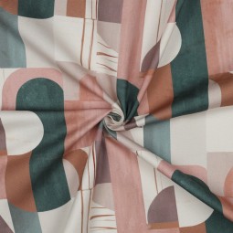 Tissu d'habillement avec motifs géométriques répétés. Tissu assez épais, idéal pour la couture de veste, manteau ou pantalon, mais peut être également utilisé pour la réalisation d'accessoires et de décoration type coussins, rideaux, sac.