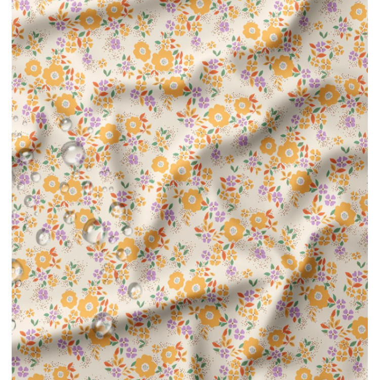 Tissu déperlant fond émeraude avec citron. c'est un tissu de confection idéal pour la réalisation de vêtements et accessoires imperméable tels que des vestes, manteaux longs, cape de pluie.
