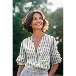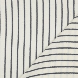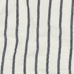 La double gaze est un tissu en coton assez léger du fait de son tissage plutôt lâche. Il est néanmoins plus épais qu'une simple gaze du fait de sa double épaisseur. Il n'est donc pas transparent et vous n'aurez pas besoin de forcément le doubler. Le tissu a un aspect froissé.