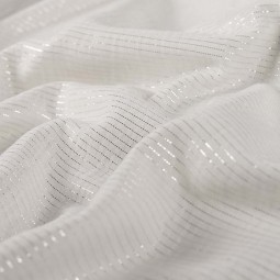 La double gaze est un tissu en coton assez léger du fait de son tissage plutôt lâche. Il est néanmoins plus épais qu'une simple gaze du fait de sa double épaisseur. Il n'est donc pas transparent et vous n'aurez pas besoin de forcément le doubler. Le tissu a un aspect froissé.