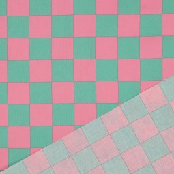 Tissu coton enduit - Damier rose vert