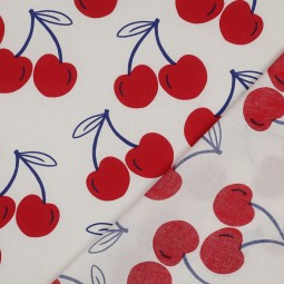Tissu coton enduit - Cerise fond naturel