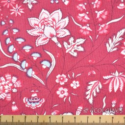 Tissu patchwork fantaisie avec des fleurs sur un fond rouge bordeaux