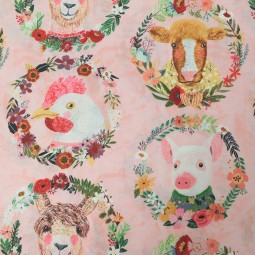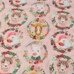 Tissu fantaisie de patchwork par Mia Charro pour la collection Farm friend. Cette collection présente principalement des motifs d'animaux effet aquarelle.