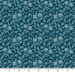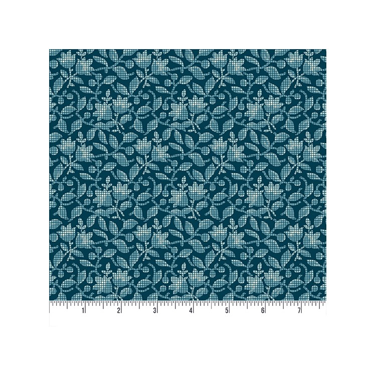 Issue de la collection, Beach house by Edita Sittar of Laundry Basket Quilts. Tissu coton feuillage et fleurs quadrillés, bleu.