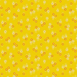 Tissu fantaisie de la marque Ruby Star Society pour leur collection Juicy qui met en lumière des motifs fleuris et vitaminés dans des coloris, orange, jaune et vert
