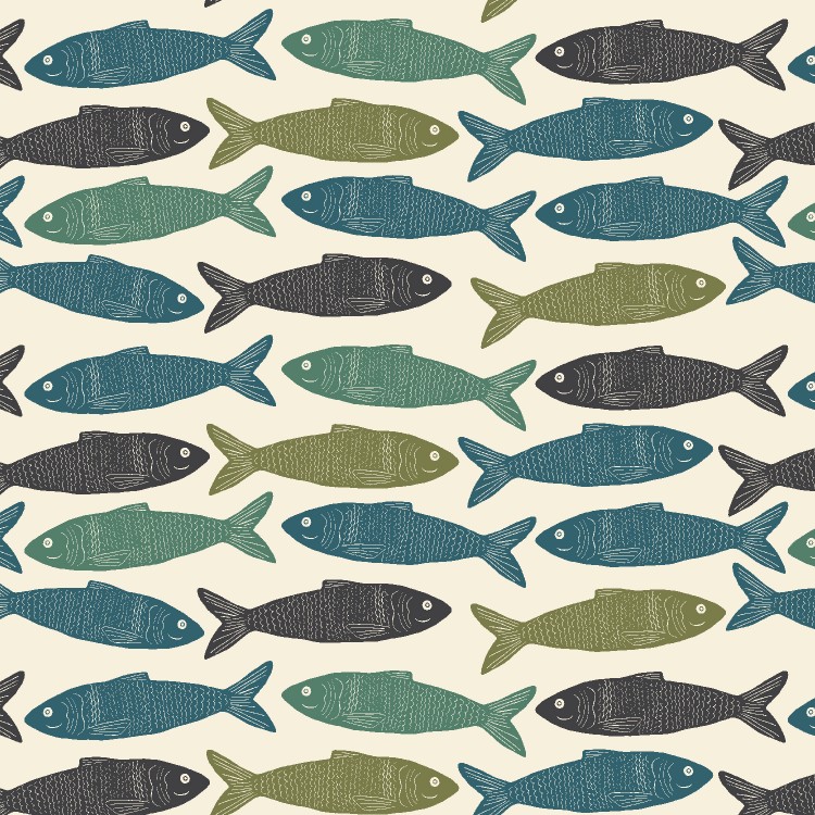 Tissu Cotton + Steel - Riverbank - Upstream trout