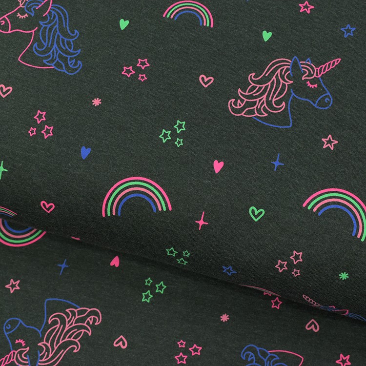 Tissu jersey extensible fantaisie de coton pour la confection de vêtements enfants et adultes.