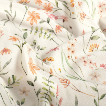 Tissu jersey de coton aux motifs imprimés idéal pour la confection de vêtements enfants et adultes.