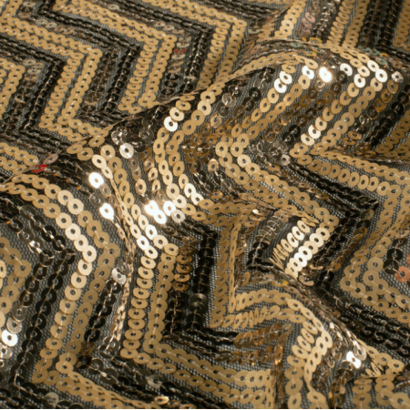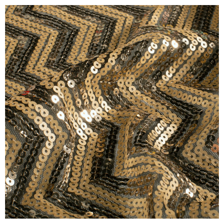 Tissu de confection original de type mesh maille très fine de polyester pour la réalisation de vêtements extensibles. Cette maille polyester est composée de ligne de sequins scintillants est appréciée pour son confort et son drapé moins sec qu'un jersey de coton par exemple. Celui-ci est scintillante