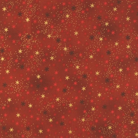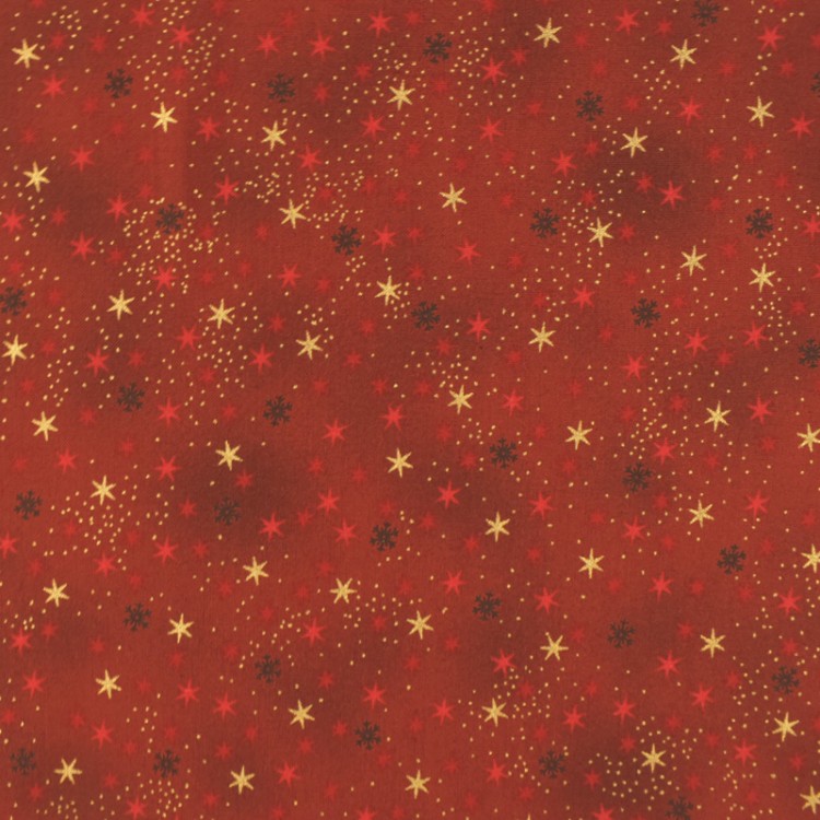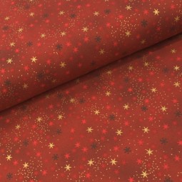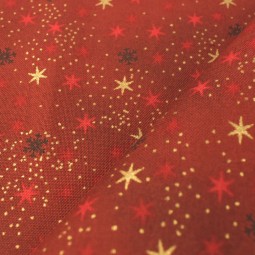 • Tissu Noël - We love christmas - Etoile rouge et or
