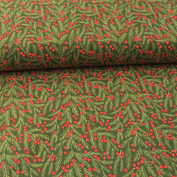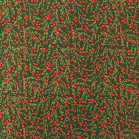 Tissu Noël - Berry and pine - Pine needles blenders dark green