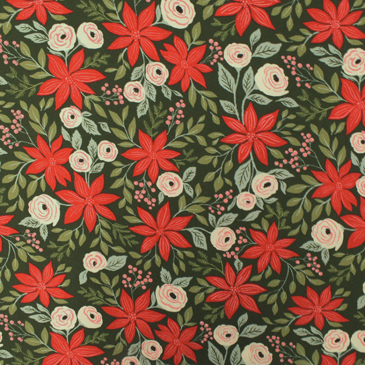 • Tissu Noël - Berry and pine - Poinsettia Party Florals