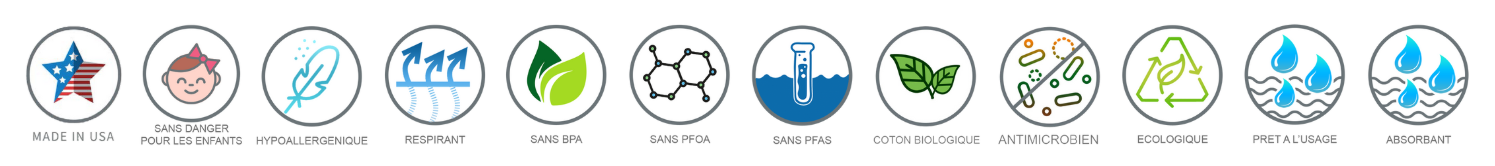 - Couche absorbante : 28% coton, 26% tencel, 23% Viscose de bambou, 13% polyester, 10% nylon