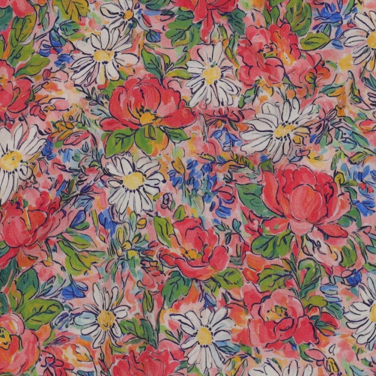 Tissu de confection en viscose imprimé. Ce tissu sera parfait pour réaliser des vêtements fluides comme des robes, jupes, pantalons, tops...