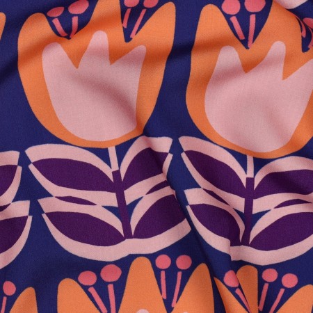 Tissu de confection en viscose imprimé. Ce tissu sera parfait pour réaliser des vêtements fluides comme des robes, jupes, pantalons, tops...