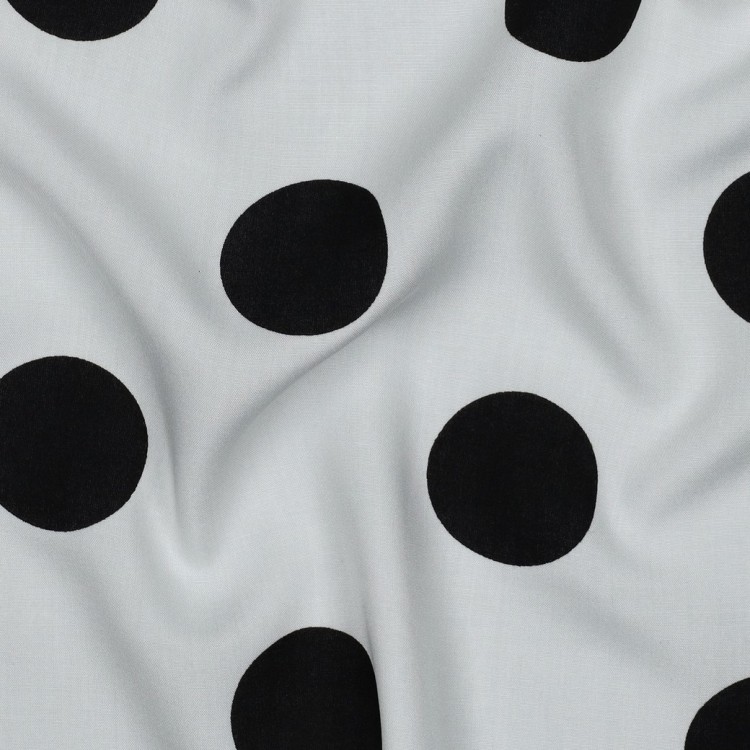 Tissu viscose - Gros pois noir fond blanc