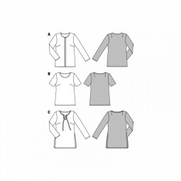 Mercerie : AB : biais, largeur 4 cm : 60 – 65 cm. A : 1 bouton. C : ganse, largeur 2 cm : 135 – 150 cm.