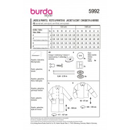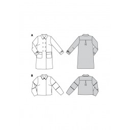 Mercerie : AB : entoilage thermocollant, agrafe et œillet à coudre. A : 9 boutons, 6 œillets à riveter, 2 fermoirs avec ardillon. B : 8 boutons-pression à coudre, Passepoil : 2,50 - 2,70 m