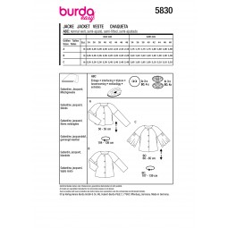 Pochette de 3 patrons pour réaliser des vestes très différentes. Une version courte boutonné et manches ajustée, une version plus longue avec manches raccourcies et col rond, et enfin une version avec des manches évasées.