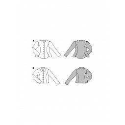 Cette pochette de deux patrons vous permettra de réaliser des cardigans polyvalents : une version avec large col rabattu, boutons pression et possibilité de jouer sur la longueur et une autre version avec une coupe cintrée à volant, des manches ballon et des boutons façon perles.